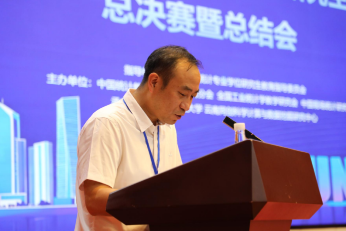 总决赛开幕式由云南财经大学统计与数学学院院长赵建华教授主持。教指委委员、云南财经大学统计与数学学院名誉院长石磊教授,云南财经大学研究生院院长纳超洪教授,教指委委员兼案例组组长、中国现场统计研究会副理事长、全国工业统计学教学研究会副会长、首都经济贸易大学统计与数据科学学院张宝学教授先后致辞,表达了对本次大赛的深切期待和对各位参赛选手的衷心祝福。